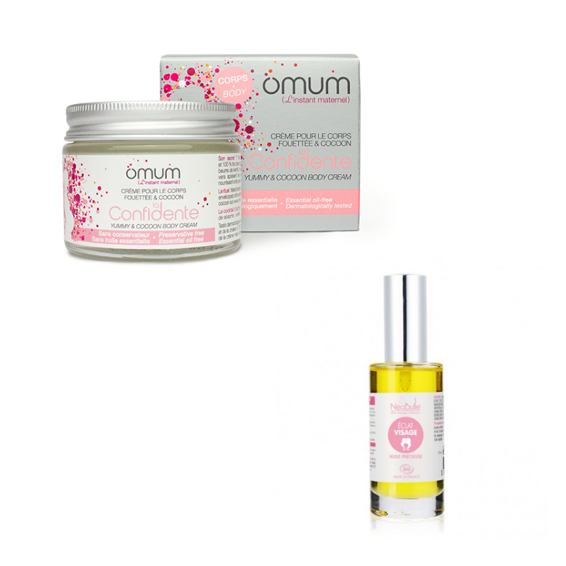 Nos marques favorites de produits adaptés à maman c’est la marque Omum et Néobulle. Omum ce sont des produits imaginés pour les futures mamans aux parfums délicats fabriqués en Gironde. Et NéoBulle, ce sont des produits bios adaptés à la maternité mais aussi adaptés pour bébé.
