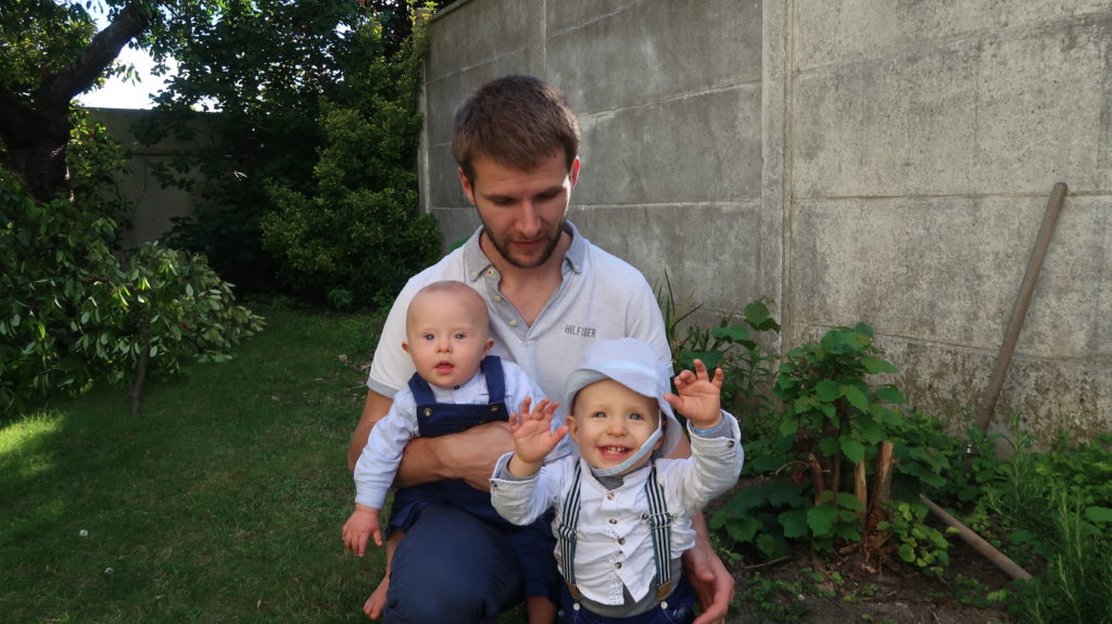 C'est de plus en plus difficile de trouver du temps pour faire ce que j'ai à faire, avec les garçons qui sont passés de deux à une sieste par jour, leur besoin croissant d'attention et Gabriel qui gambade partout en fouillant les moindres recoins de l'appartement ! Après le congé maternité je n'ai pas pu reprendre mon emploi donc je ne peux pas parler des difficultés d'organisation de vie professionnelle et vie familiale. Sinon, ils dorment, mangent et tètent en même temps donc pas de souci particulier au niveau de l'organisation, si ce n'est d'avoir pu préparer au moins leurs repas en avance ! Dans tous les cas, nous avons de la famille autour de nous, toujours prête à rendre service si besoin, et ça c'est une grande chance. Parce que pour nous la difficulté ce n'est pas la handicap, qui ne change rien à notre quotidien, c'est le fait d'en avoir deux en même temps ! Mais comme je disais, au moins ils sont calés sur le même rythme, et ça c'est plutôt pratique.