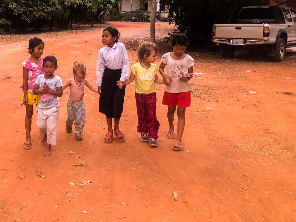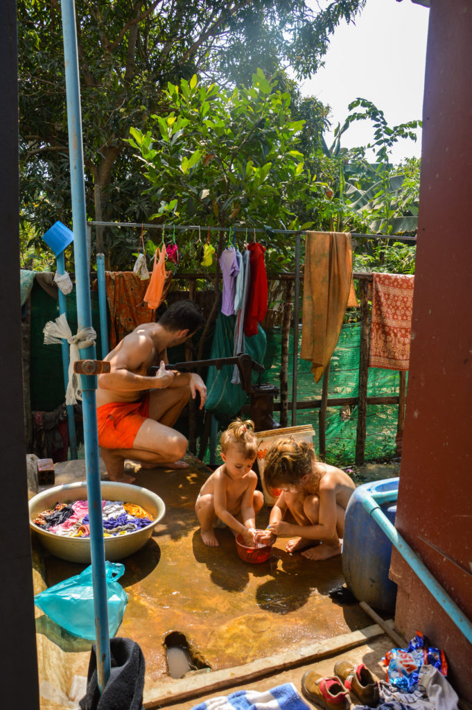 Quand on est partis, la grande avait 4 ans, la petite 18 mois. On les impliquait toujours dans notre programme et organisation pour pas juste les trimbaler d’un endroit à un autre ;) Tous les matins on se disait ce que chacun avait envie de faire pendant la journée, on adaptait au maximum pour que ça convienne à tout le monde. Si on avait des excursions de prévues, les filles préparaient leur petit sac elles-mêmes, avec notre aide, même la petite. C’est pareil pour les départs de chaque endroit, chaque pays. Elles préparaient leur mini valise Trunki avec leurs jouets et ensuite elles allaient jouer dehors ou se balader avec Bertrand pendant que je faisais les affaires. Elles adoraient ces petits rituels, elles sentaient excitation des départs, la promesse de nouvelles aventures ou alors la nostalgie de quitter un endroit qu’on adorait.