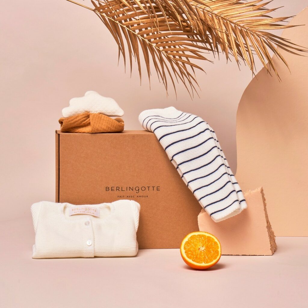 Un magnifique coffret de naissance de chez Berlingotte. Zoom sur le coffret Gaspard, composé d’un ensemble en tricot gilet - pantalon, ainsi que d’un doudou nuage. Coffret complètement personnalisable en choisissant la couleur des vêtements (pour ce coffret bleu à rayures, rose ou bleu pastel), vous pouvez choisir la taille (de 3 à 12 mois) et vous pouvez y insérer un petit mot délicat. Une excellente idée de cadeau pour Noël pour habiller bébé avec des vêtements de qualité.