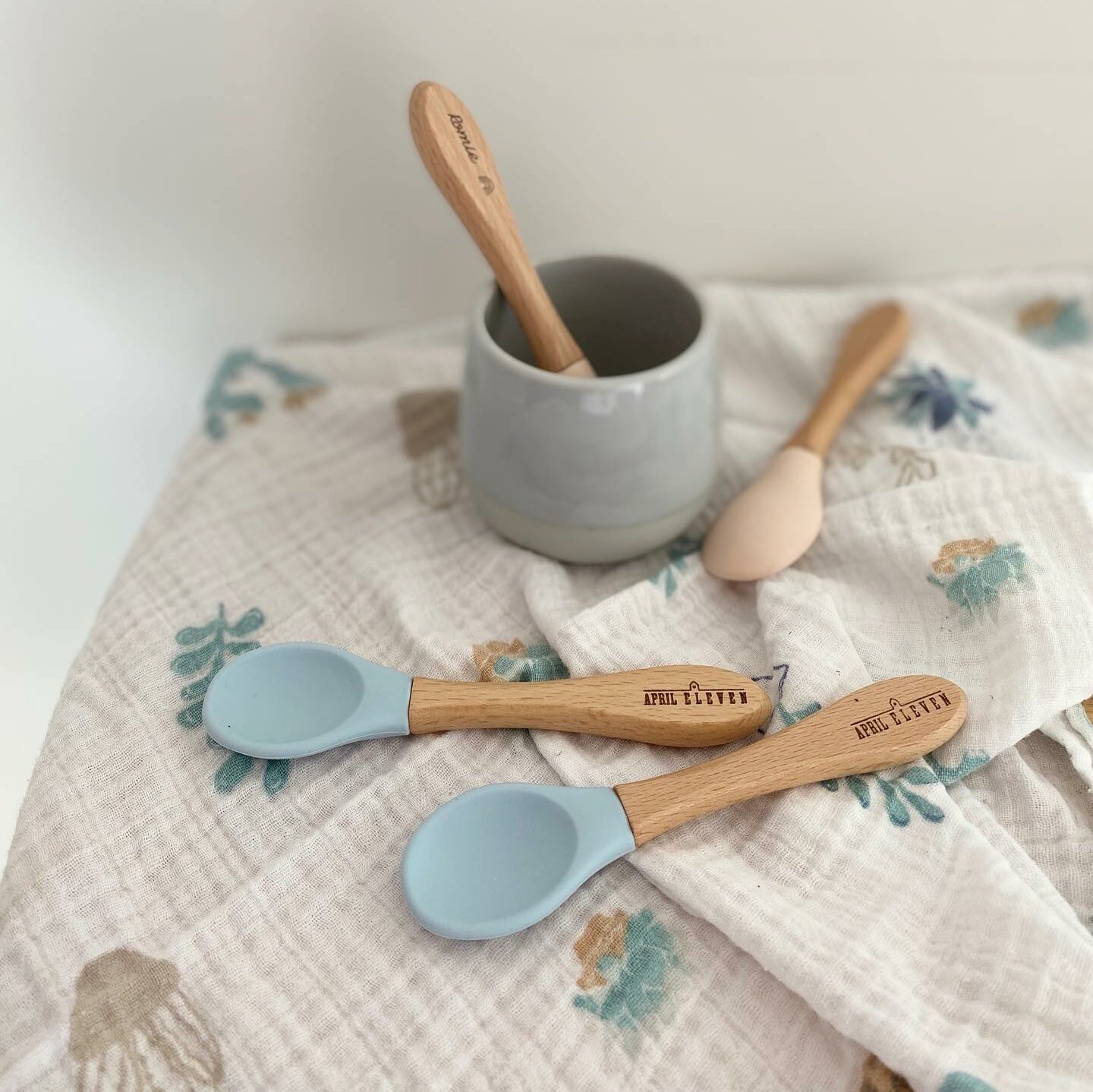Ustensiles respectueux de la nature et de la planète pour que nos enfants grandissent plus sereinement : que demander de mieux ? Cuillères vues chez April Eleven, qu'on adore. Vous avez la possibilité de personnaliser les cuillères en bois en y ajoutant le prénom de votre enfant. Elles existent en bleu ou en beige foncé pour les garçons et les filles. Tombez sous le charme de ces petites cuillères trop mimis mais surtout bonnes pour la santé et l'environnement.